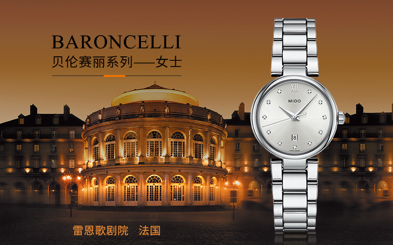 MIDO美度贝伦赛丽系列的灵感来源于法国雷恩歌剧院,1836年歌剧院落成时正值繁复装饰风潮流行,而MIDO美度贝伦赛丽系列则以与雷恩歌剧院相似的微妙曲线和轮廓闻名,一经面世便以其典雅时尚的风格受到众多腕表爱好者的喜爱,缔造了MIDO美度品牌发展史上无数个荣耀传奇的时刻。