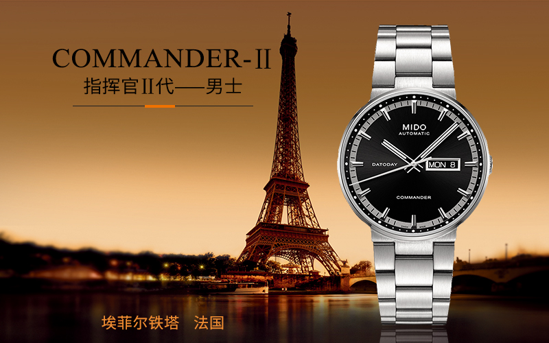 诞生于1959年的MIDO美度指挥官系列腕表,至今经历了近六十年的制造历程,正如法国巴黎的标志性建筑埃菲尔铁塔一样,MIDO美度指挥官系列已经成为MIDO美度表真正的经典代表作品。MIDO美度以硬朗的钢铁、曲线及斜线的运用来代表埃菲尔铁塔的刚毅,以几何构造勾勒钢铁轮廓,将铁塔建筑结构重现于表盘设计中,实现不被时间磨灭的设计内涵。