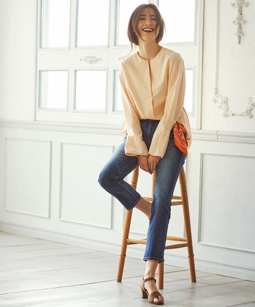这件衬衫采用真丝绉面料,而真丝绉面料的优点在于恰到好处的光泽度,柔软的触感以及自然的垂坠感。由于该面料经历过砂洗工序,所以可在家自行清洗,无需专门干洗。在阳光明媚的春日午后,穿上这款轻薄而不失质感的小立领衬衫,变身优雅美丽的“23区”女神,与樱花来一场美丽的邂逅。