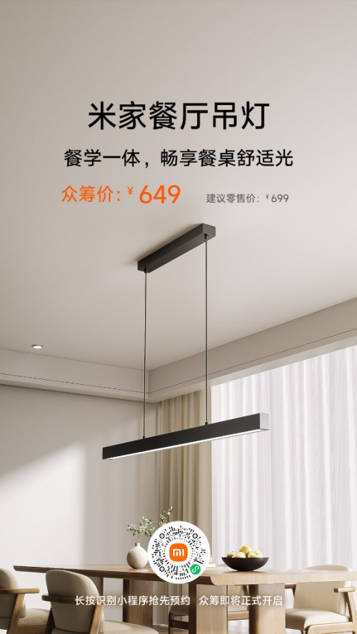 餐学一体解锁多场景,米家餐厅吊灯众筹正式开启