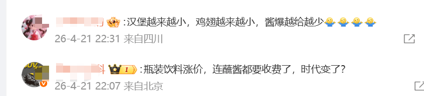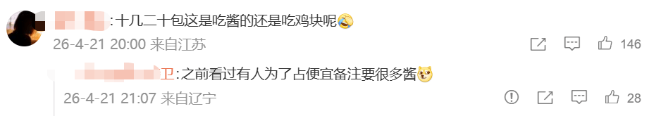 另据九派新闻报道,多家肯德基门店工作人员于4月21日表示,除了正常搭配,若顾客仅有少量额外需求,仍可根据实际情况酌情提供,但如需求较多,则建议按照公司标准另行购买。