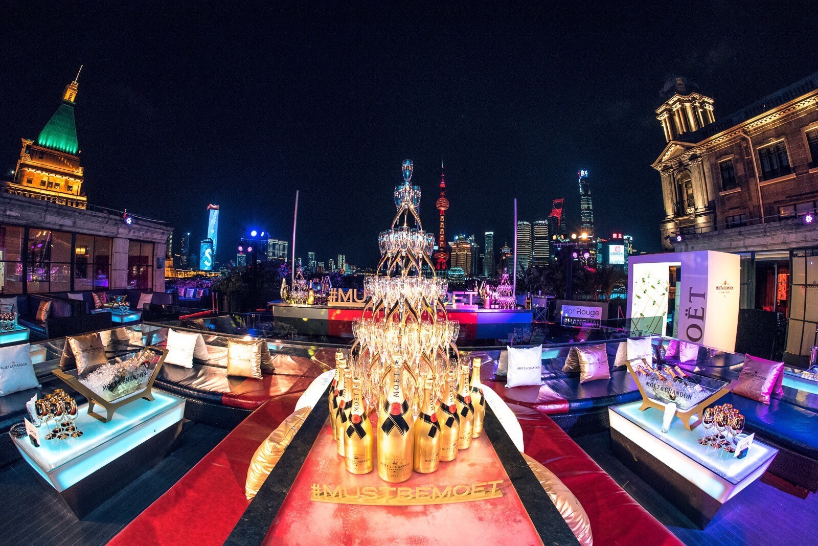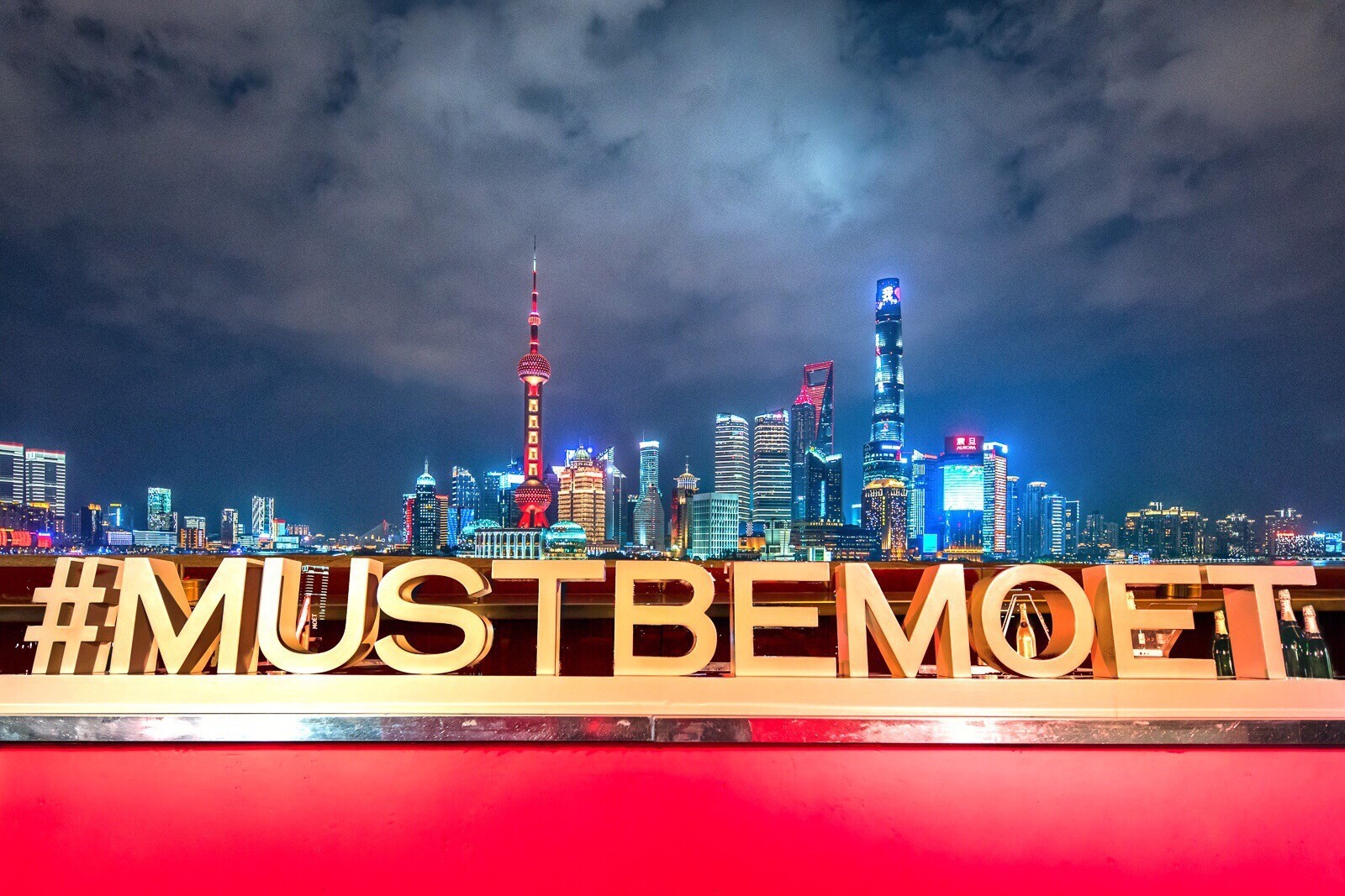 酩悦香槟在外滩迷人景致的映衬下更显闪耀