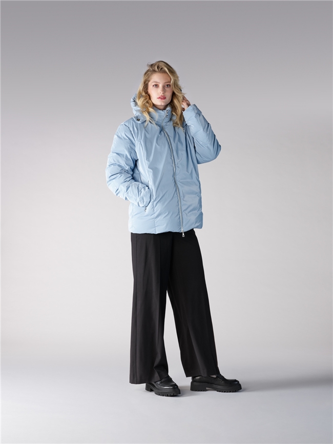 意大利Olmetex科技面料,轻薄、防水、防风。内里手工填充850蓬松度波兰白鹅绒,由专攻阿尔卑斯远征装备的工坊完成。左肩的雪山刺绣会随光线变化色调,为女性肩线重新设计。这是一件可以陪伴女性从城市通勤到周末山野的“隐形铠甲”。