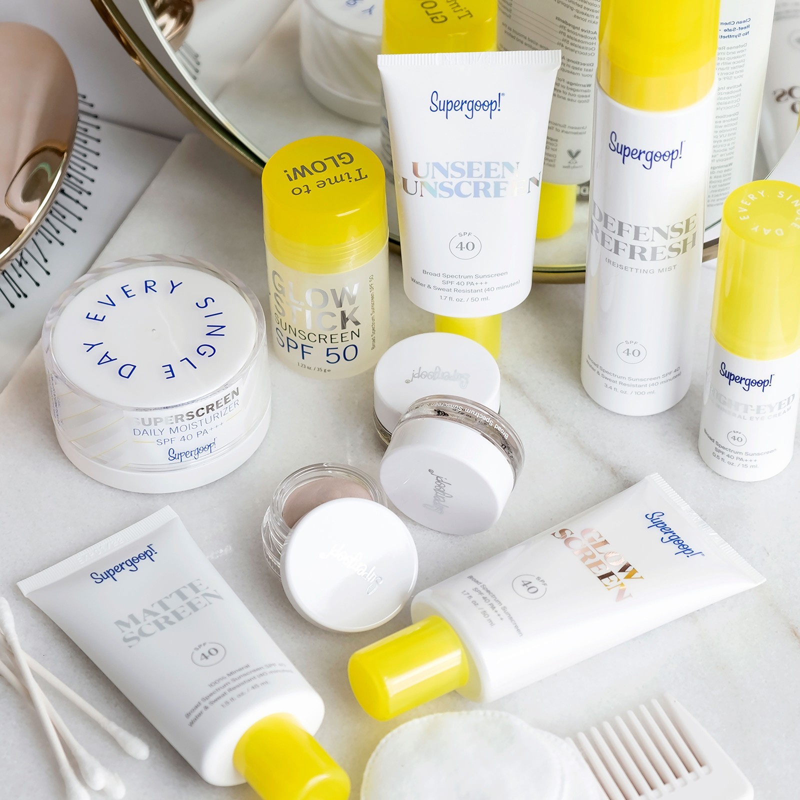 从大家熟悉的防晒霜、防晒喷雾,到带有防晒值的慕斯、散粉、眼霜、面霜……Supergoop!创新地将防晒功能注入了你能想象的所有美妆护肤产品中,使防晒逐渐成为每个人、每一天必要又自然的环节。