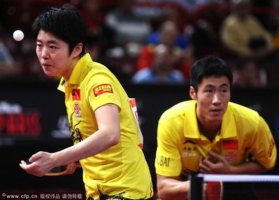 在 世乒赛混双项目中,中国队一向表现强势,自1991年至2011年已夺下11连冠。值得一提的是,本届世乒赛,国乒在混双项目上未派出最强档组合参赛。明 眼人都知道,男女双打和混合双打不是奥运会正式比赛项目,这3个项目的重要性,在国乒眼里自然没有男女单打项目重要。未派最强混双组合参加本届世乒赛,国 乒显然从主观上并没想全部包揽男女单打、男女双打和混双5枚金牌。国乒此举的目的不言自明——“漏掉”一块半块的金牌,让对手们得到。出征巴黎之前,总教 头刘国梁也已坦言了这点,“为实现项目的可持续发展,不排除未来几年大赛丢金的可能。”