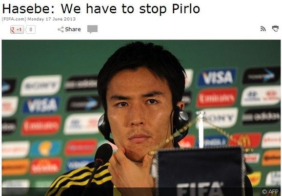 在0-3输掉联合会杯首场小组赛后,日本队次战将迎来同样强大的意大利队,对此,日本队长长谷部诚表示,为了赢下这场比赛,日本队一定要盯死意大利大脑皮尔洛。